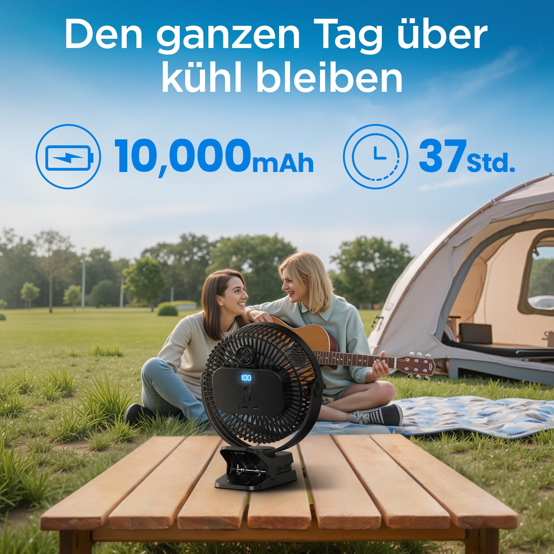 - 【Smart Display, Smarter Cooling】: The camping fan features a crisp LED display that shows exact wind speed and real-time battery %—no more guessing when it’ll die! The screen auto-sleeps in 5 seconds to save power (tap to wake!), making it perfect for late-night camping or focused work sessions.