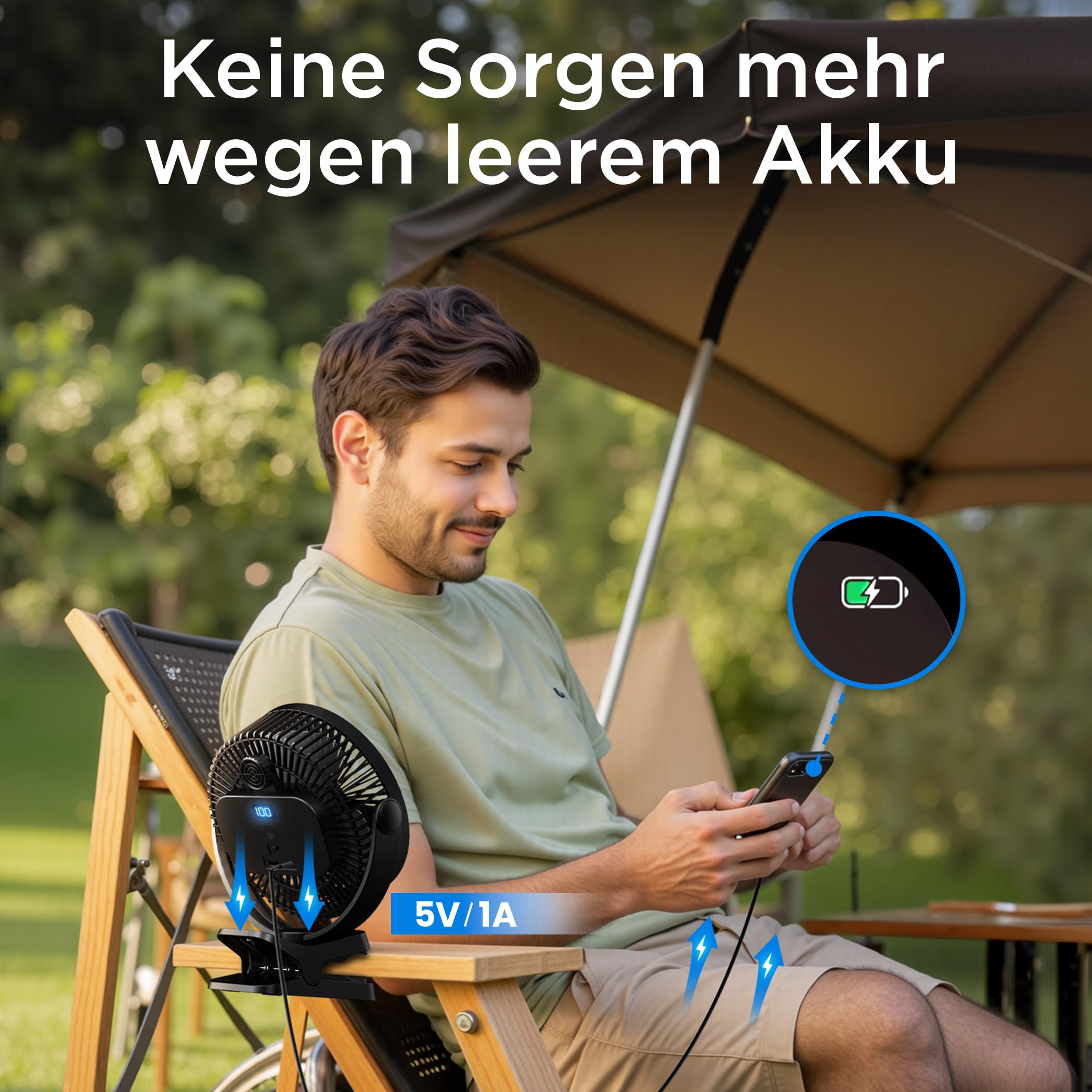 - 【Max 37 Hrs Working Time + Phone Charger On-The-Go】: Never choose between coolness and connectivity! The golf cart fan packs a massive 10000mAh battery, blasting max 28 hours of cooling and doubling as a lifesaving power bank to charge your phone while it runs! With its USB-C port, it offers 10W charging speed. Thus the fan gets charged 50% faster. It gets fully charged within only 6.5 hours.