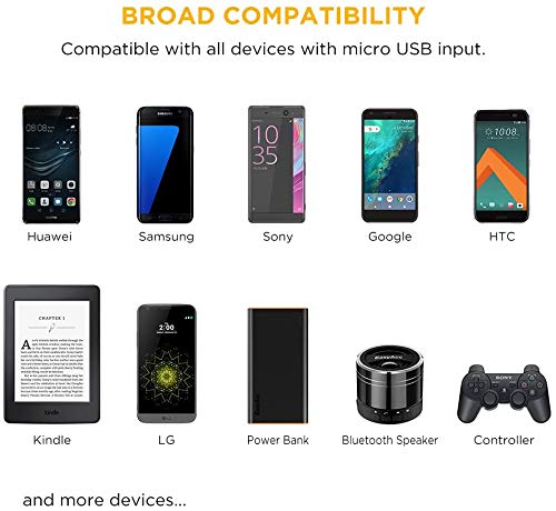 - Micro-USB-Anschluss, passend für die meisten Smartphones und Tablet-PCs mit Micro-USB-Ladeanschluss, Samsung Galaxy S7 S6 S5 S4 S3, Nokia Lumia 920, HTC One X, Sony Xperia S, Google Nexus 7/10, externer Akku usw.