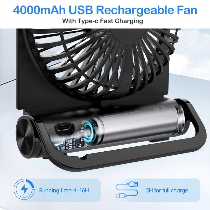- ❃【Wiederaufladbar mit schnellem USB-C-Laden】 Dieser USB-Tischventilator verfügt über einen eingebauten 4000-mAh-Akku. Sie können ihn für dauerhaftes Arbeiten an die USB-Stromversorgung anschließen oder den Akku für mobiles Arbeiten verwenden. Das vollständige Aufladen dauert mit dem USB-C-Stromkabel nur 2,5–3 Stunden.