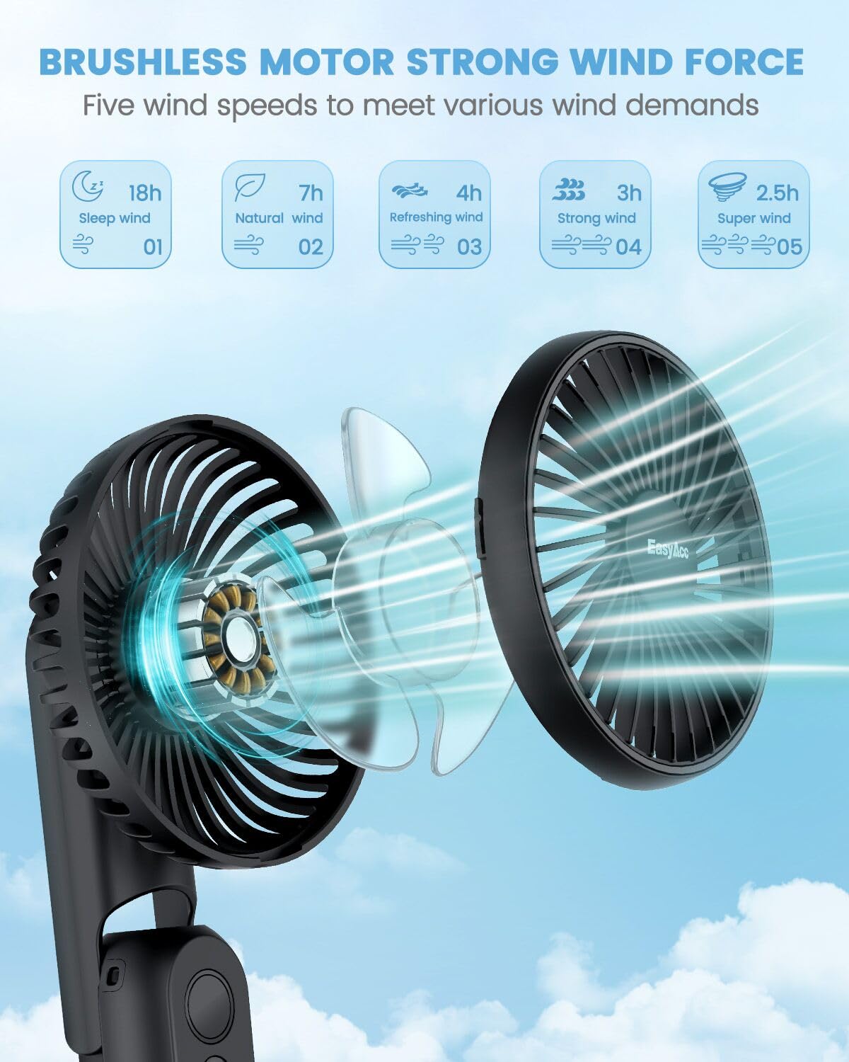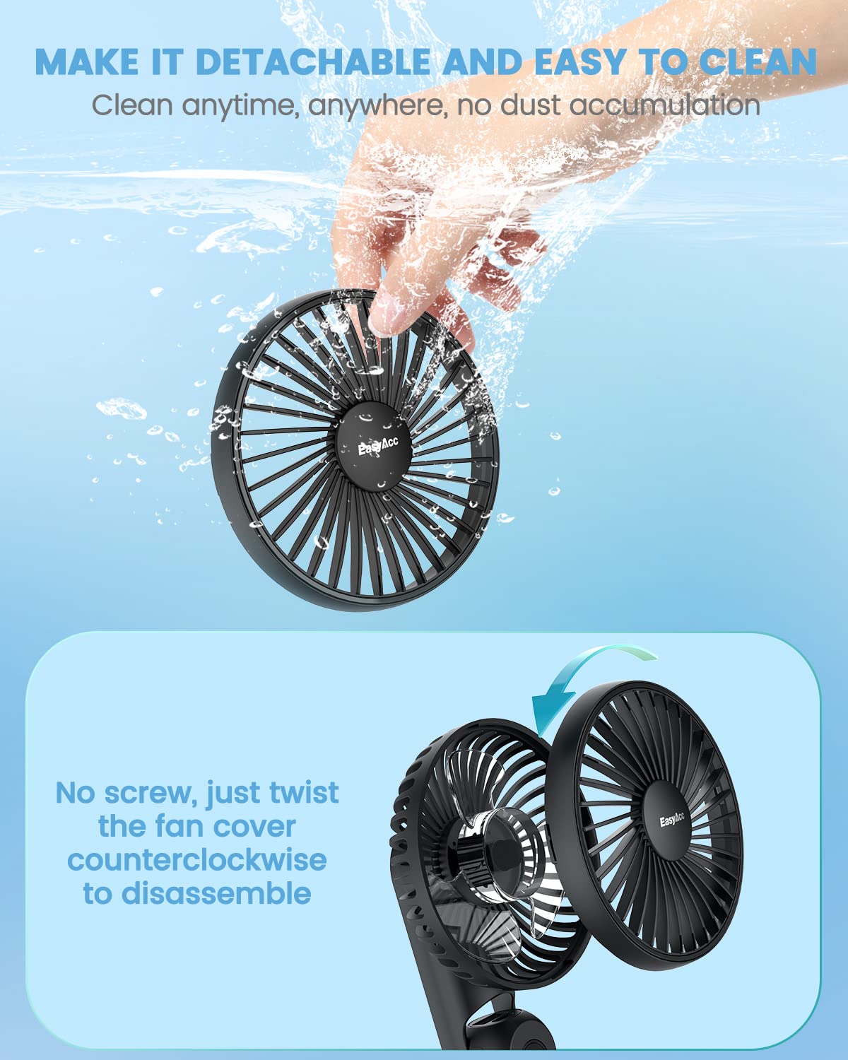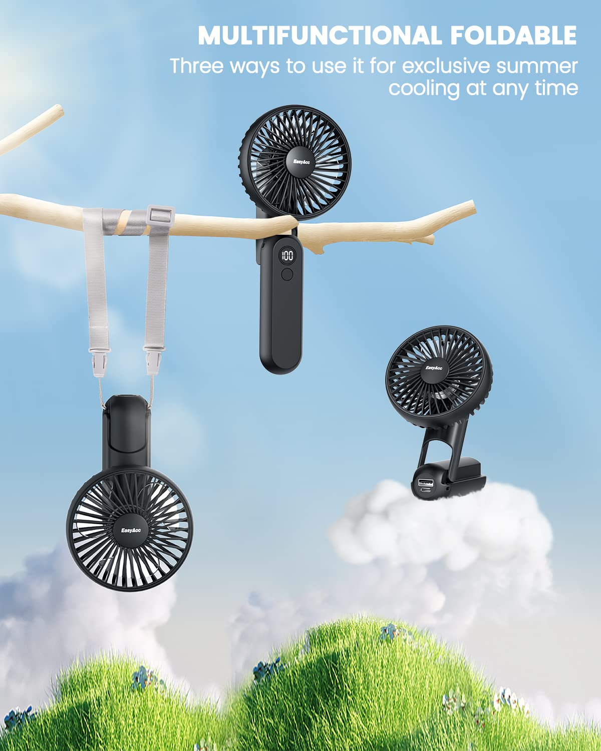 - 🏕️【Multipurpose Design Portable Handheld Fan】This portable fan is 3 in 1 fan. ① Handheld fan, very convenient to take out for outsoor activities or travel. ② Mini desk fan, 180° foldable, rotate it as mini desk fan. ③ Neck fan, comes with a lanyard, can hang on your neck make hands free. EasyAcc dedicated to offer high quality products with better price and service.