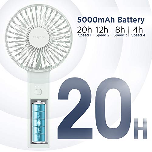 - 💙【Upgraded 5000mAh Battery - Up to 20 Hours of Use】Built-in rechargeable battery for easy charging and use. Capacity increased to 5000mAh for 4-20 hours of cableless use. Portable personal cooling fan with foldable handle for easy handling as well as transport in bags and purses.