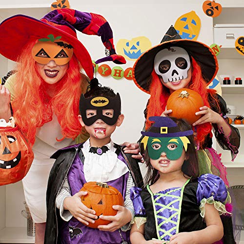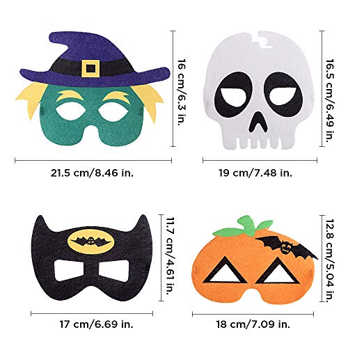 - COOLE DESIGNS: Wir haben vier Augenmasken, die sich ideal für Süßigkeiten- und Horrorpartys eignen: orangefarbener Kürbis, schwarze Fledermaus, grüne Hexe, weißer Totenkopf. Hol dir, was deine Kinder zum Verkleiden brauchen, und tauche alle in den Halloween-Spaß ein!