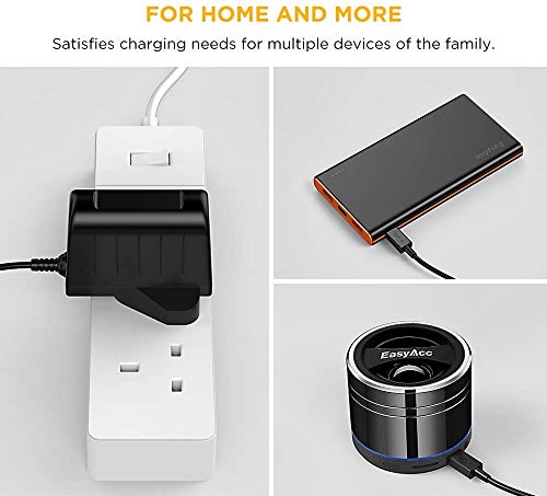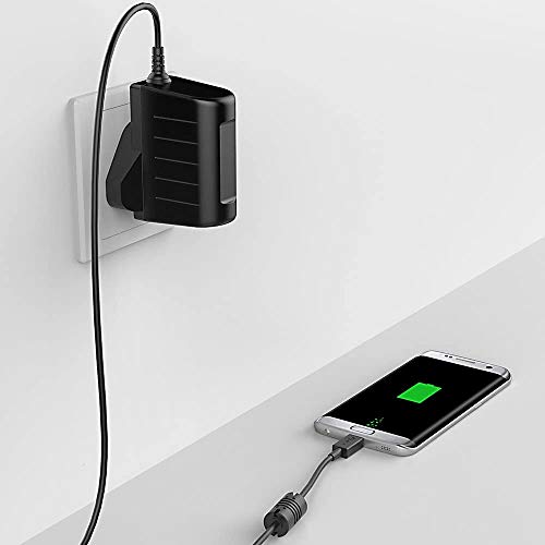 - Ultra long cable length up to 4 Feet(1.2M) for more convenient charging. UK 3 pin adapter; Input: 100~240V; Output: 5V / 2A.