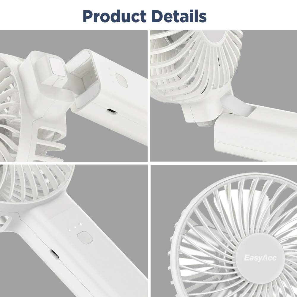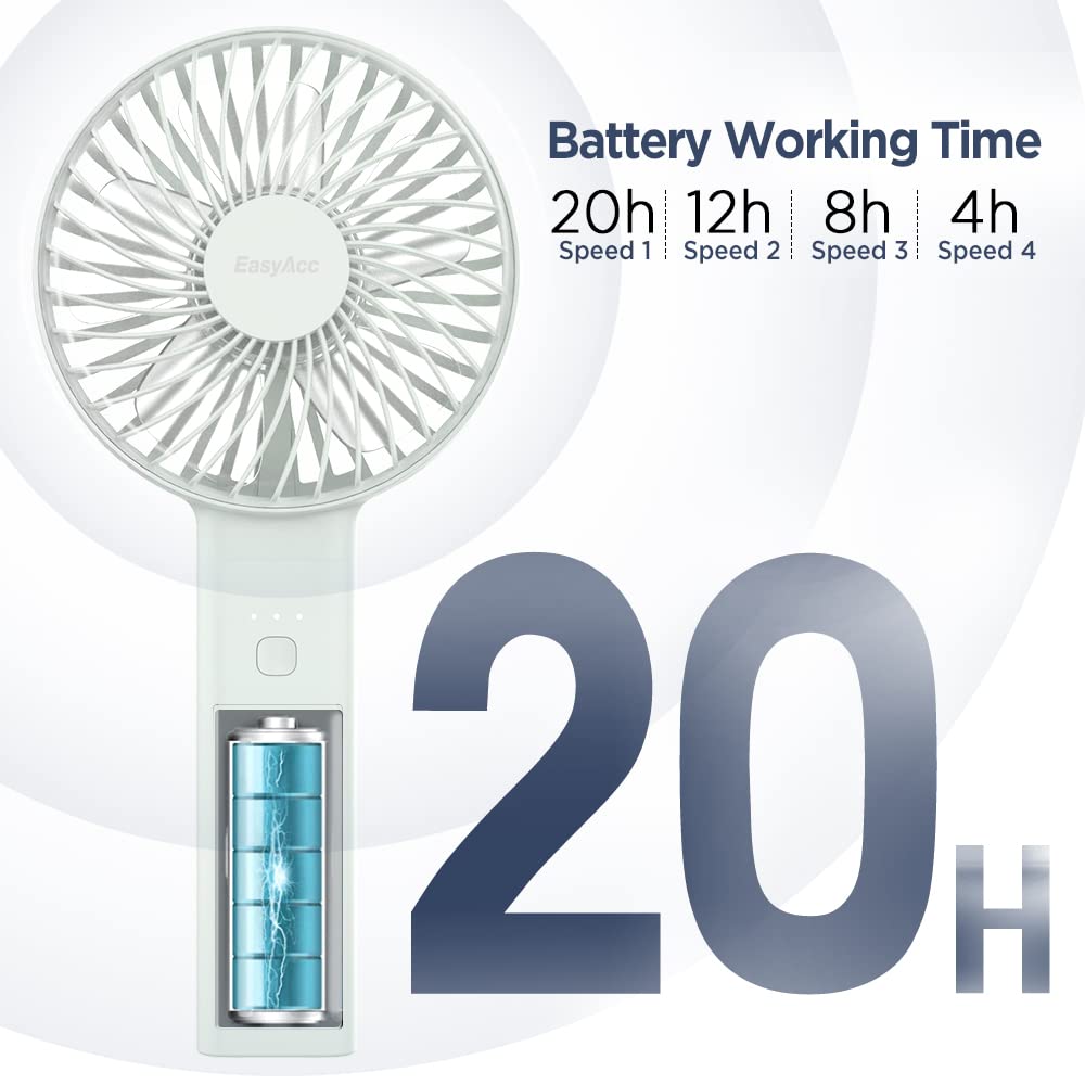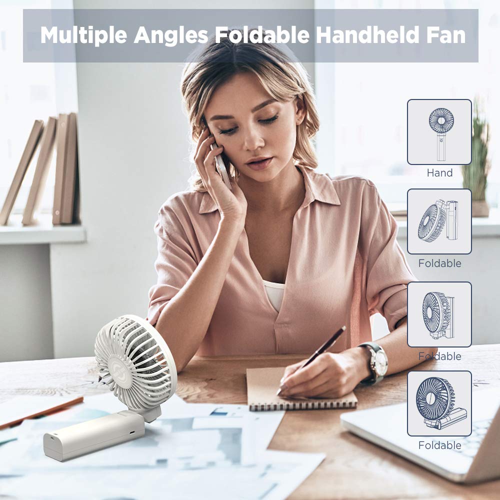 - 【5000 Capacity Rechargeable Battery - Up to 20 Hours of Use】Built-in rechargeable battery for easy charging and use. Capacity increases to 4-20 hours without cables. Don't worry it will stop working any time soon. Portable personal cooling fan with foldable handle for easy handling and storage in bags and purses.