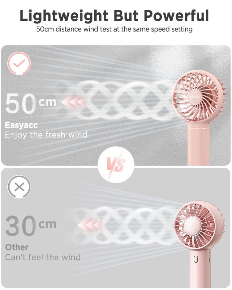 - 🌞【Handheld Fan+Desktop Personal Fan】A mini portable handheld fan that also used as a desktop fan. The detachable base ensures it stand steady. You can also take it with you for outside handheld use. Including silicon lanyard makes the fan easy to hang on your wrist or bag, offering convenient cooling at anytime anywhere.