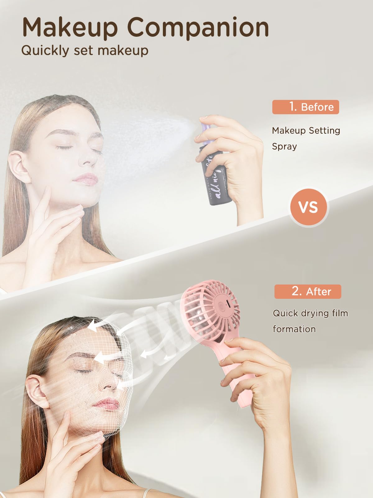- ❄️【3 Adjustable Wind Speeds Little Makeup Fan】The hand fan has 3 adjustable wind speeds and uses a high-performance motor and optimized air duct to increase wind power while minimizing noise. Compared with other handheld fans, it has faster rotation speed (6379 r/min) and stronger wind power (4.5 m/s). You can choose natural breeze or strong cool breeze, which is a good helper to get rid of hot flashes in hot summer, and is also a good partner for skin care and eyelash extension