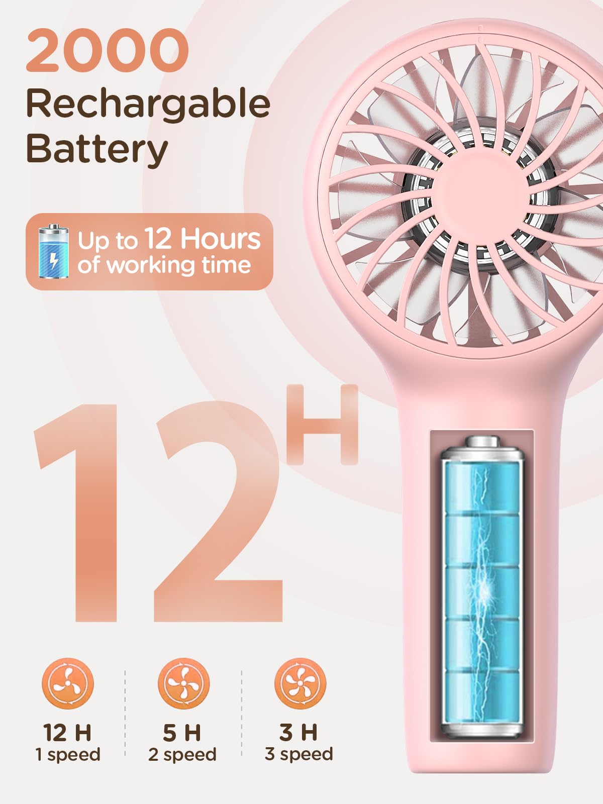 - ❄️【Type-c fast charging, lasting 3-12H working time mini fan】The personal fan has been upgraded to Type-c fast charging, which can be fully charged in 2-3H hours. It has a built-in 2600 rechargeable battery, which can be used for 3-12 hours on a single full charge, fully meeting your day's schedule. The battery has passed relevant safety certifications and complies with aviation standards. Suitable for charging power banks, laptops and car chargers