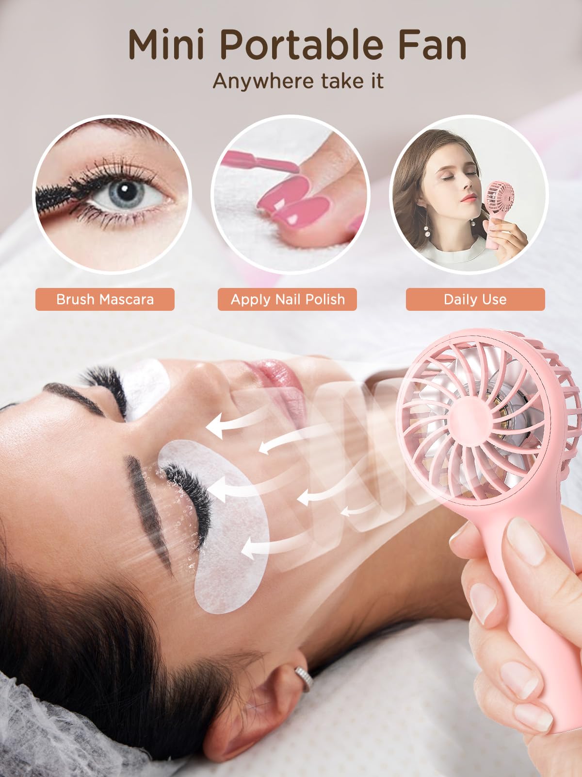 - ❄️【Long-lasting Working Time Lash Fan】The portable small fan only weighs 115 g, is thinner and shorter. Portable, you can easily put it in your pocket or bag, very convenient to carry. Whether you're working at home, indoors, outdoors or traveling, it's the ideal companion to keep you cool during the summer