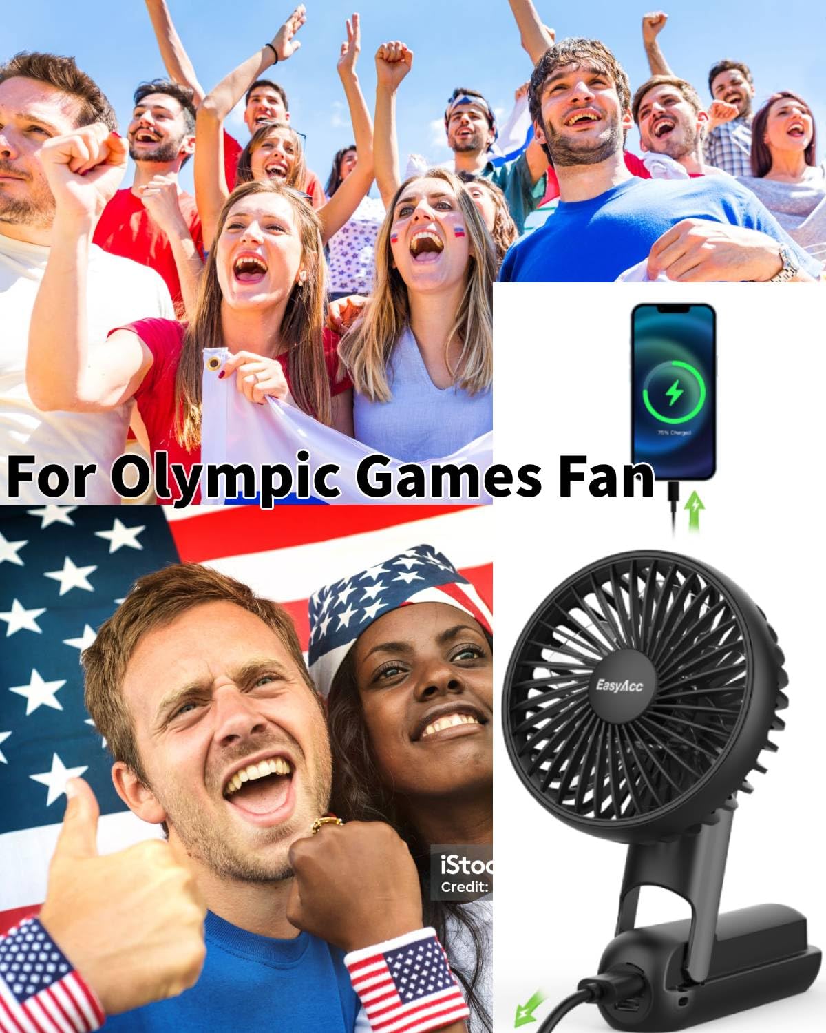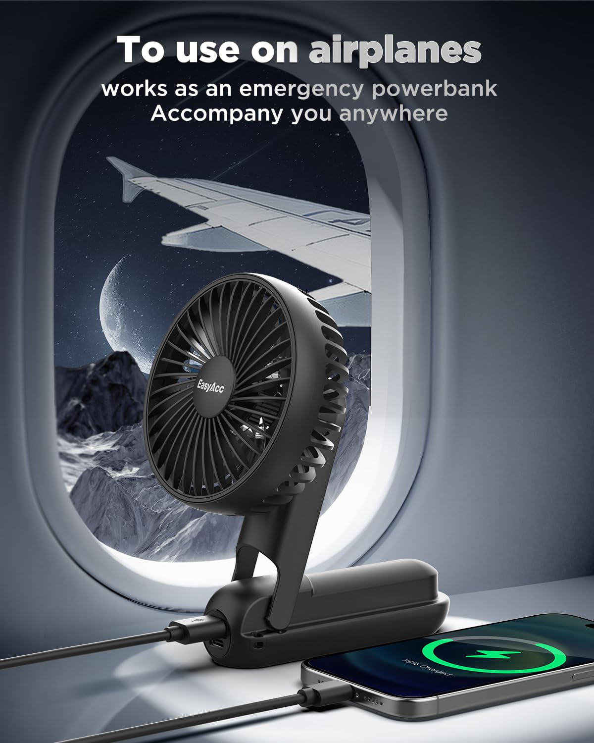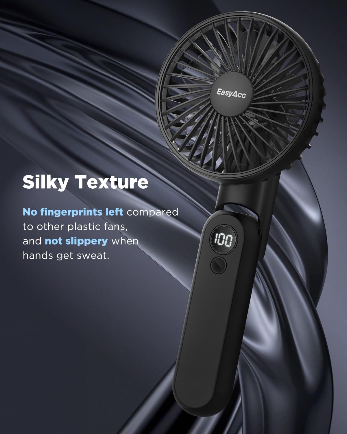 - 2024 Updated FOUR💫【Smart LED Digital & 180° Foldable Powerful Fan for Olympic Games】Are you still worried that the fan suddenly stops working and the battery is low? Quickly choose this EasyAcc battery fan, equipped with a smart cold light digital display, which can display the wind speed level and power consumption, help you track the battery power and remind you to charge the fan in time, no longer worry about not seeing the battery capacity and not charging in time Fan charging.