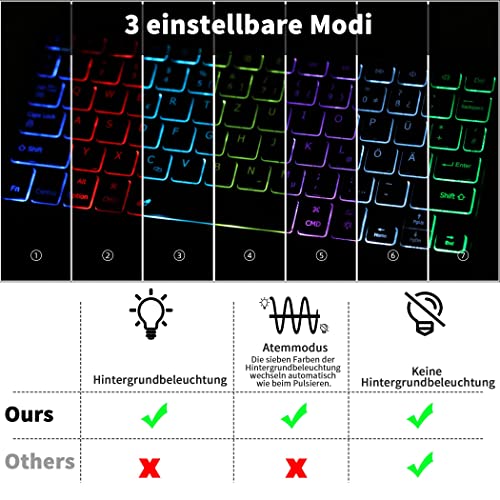 - Tastaur illuminated rechargeable removable – the Bluetooth keyboard has 7 colour lighting available, 3 brightness levels can be adjusted.