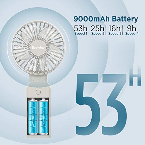 - 💙【Upgraded 9000mAh Battery - Up to 53 Hours of Use】Built-in rechargeable battery for easy charging and use. Capacity increased to 9000mAh for 9-53 hours of cableless use. Portable personal cooling fan with foldable handle for easy handling as well as transport in bags and purses.