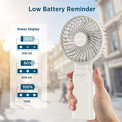 - ❤【Low Battery Reminder---Recharge in Time】Unique battery fan on Amazon with the low battery reminder. Press the power button to see how much power is left and whether the personal fan needs to be recharged. LED indicator status: 1) All 3 lights on: fully charged; 2) 2 lights on: 60% power left; 3) 1 light on: 30% left. (Note: LED indicator flashes while charging. Once fully charged, it will remain lit.)