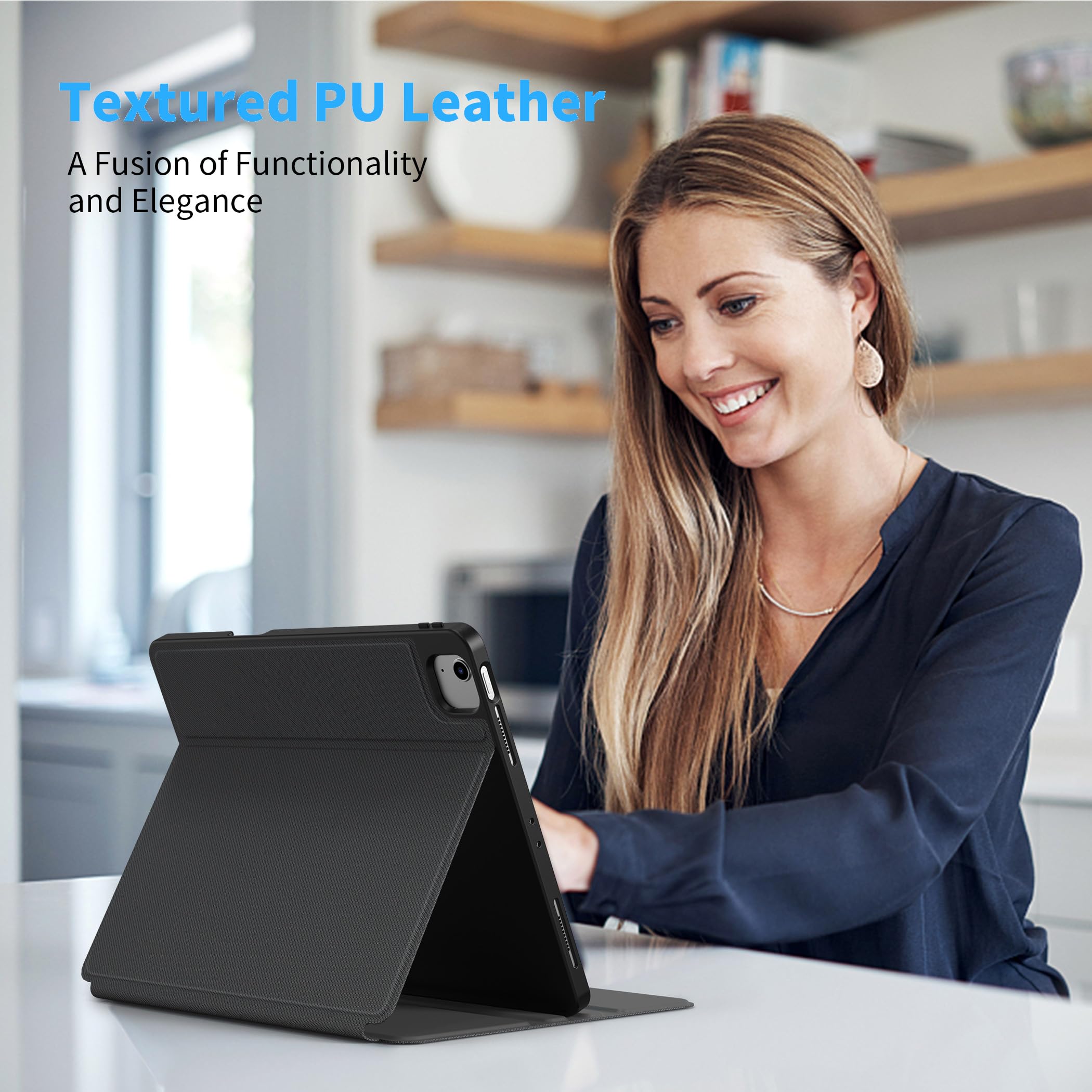 • [Multi-angle Viewing] --- The two anti-slip grooves of the front cover can support your device at different viewing angles.