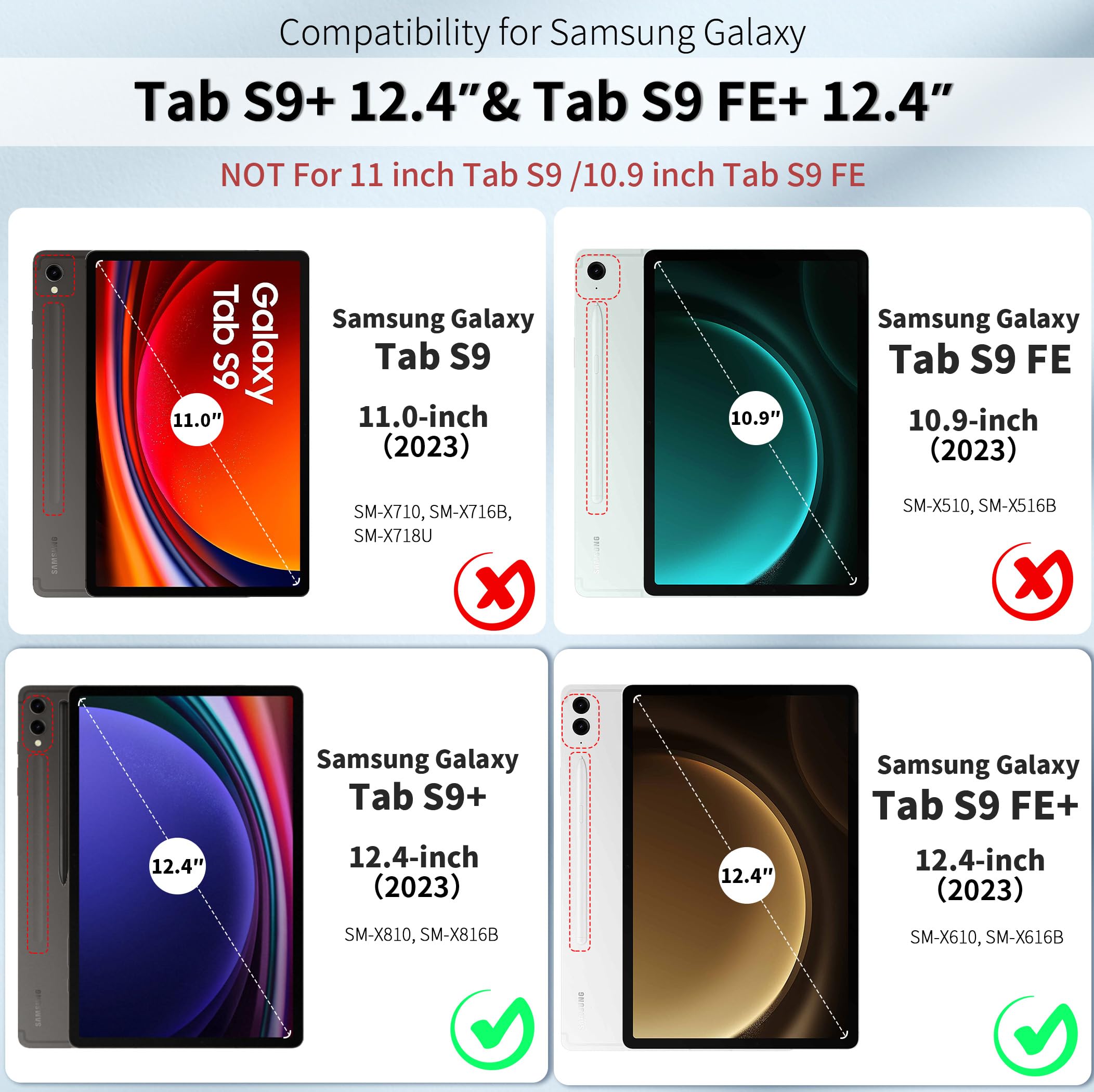 - Specially tailor-made compatible with Samsung Galaxy Tab S9 FE+ /S9 Plus 2023 12.4 inches. Galaxy Tab S9+ (models: SM-X810, SM-X816B); Galaxy Tab S9 FE+ (models SM-X610, SM-X616B)